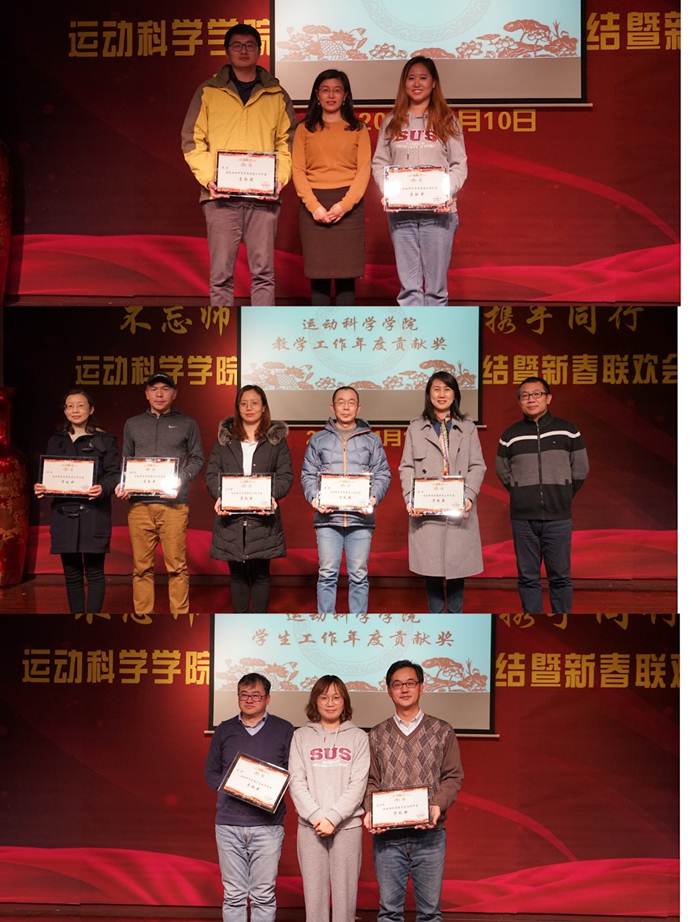总结会由运科学院党委书记熊静主持。会上王茹院长作2019年度运科学院工作总结,她从四个方面对2019年工作做了总结:一是用好办院自主权,提升治理水平;二是公平配置教育资源,提高人才培养质量;三是以国家重大需求为引领,太阳集团取得新突破;四是坚持开放式办学,不断推进国际交流与合作。王茹院长表示,学院取得的这些成绩不仅得益于学校领导及各职能部门的支持与配合,更离不开学院全体师生的共同努力,并代表学院向学校领导及运动科学学院全体教职工表示真诚的感谢,同时提出希望,希望在2020年运科学院全体教职工共同努力,争行业话语权,讲体育好故事;教学科研双突破,自科社科全开花;补短板,推进国际交流与合作。为表彰运科学院优秀教职工过去一年的兢兢业业,辛勤付出,本次总结会还特别颁发了运动科学学院党建工作年度贡献奖、教学工作年度贡献奖、学生工作年度贡献奖、管理服务年度贡献奖和文体活动年度贡献奖。获奖教师代表依次接受表彰。