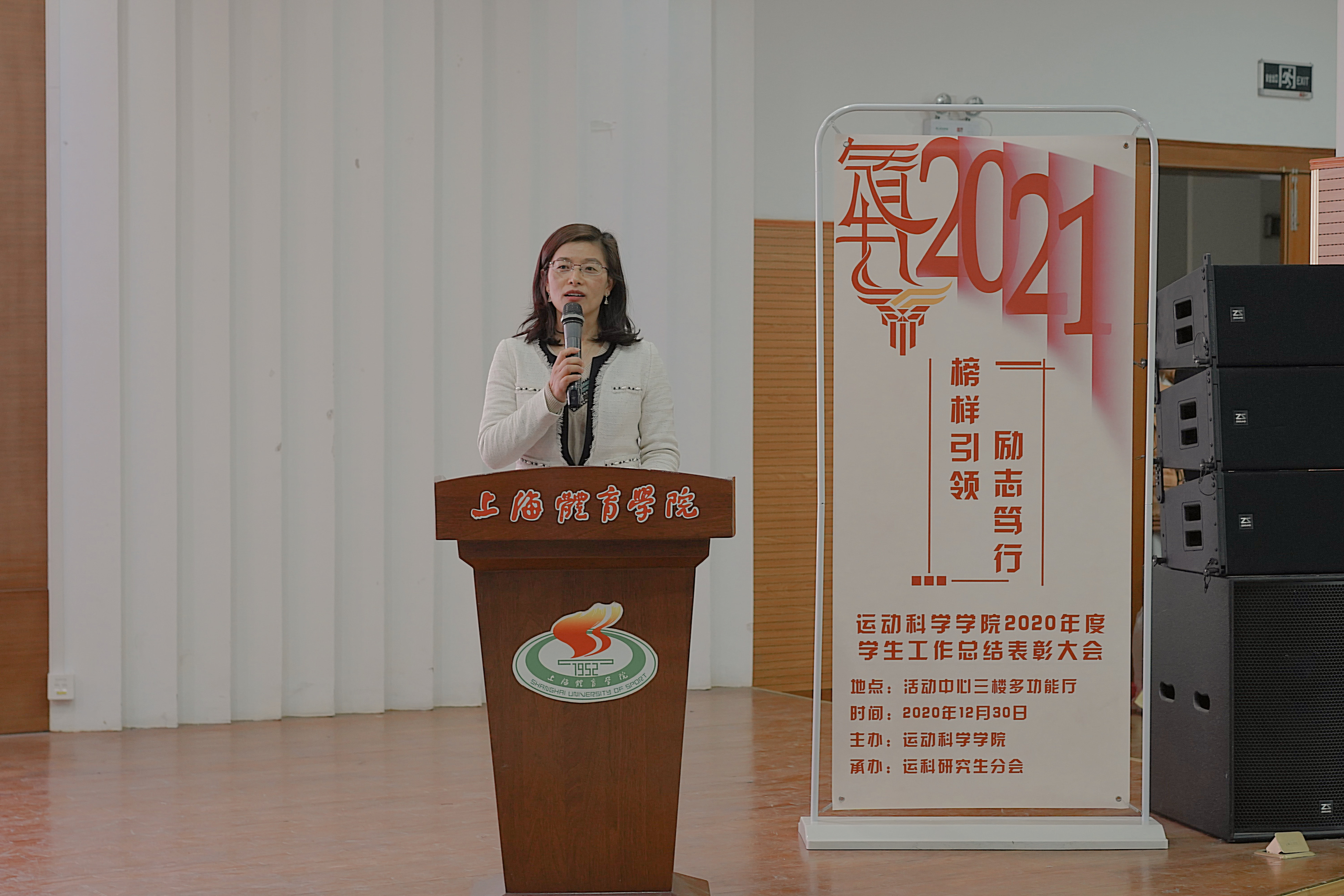 最后,运科学院党委书记熊静老师对此次表彰大会进行了总结陈词并对本次表彰大会所有的获奖师生表示衷心的祝贺。熊老师指出,“双一流”学校的建设最重要的一个评价指标是学生是否符合“双一流”,为提高学生在学校的获得,提升学生内涵,学院今年围绕中心办学、保持秩序、保证质量、拓展内涵以及全年的疫情防控工作时刻这两项中心工作展开,无论是在学院的硬件设施还是教学质量都实现了新的提高。相信未来在全院师生的“励志笃行”之下,更能体现上体“双一流”学校的办学质量,更能彰显运科学院的成绩,同时希望运科学院全体师生在新的一年取得更多新的突破。