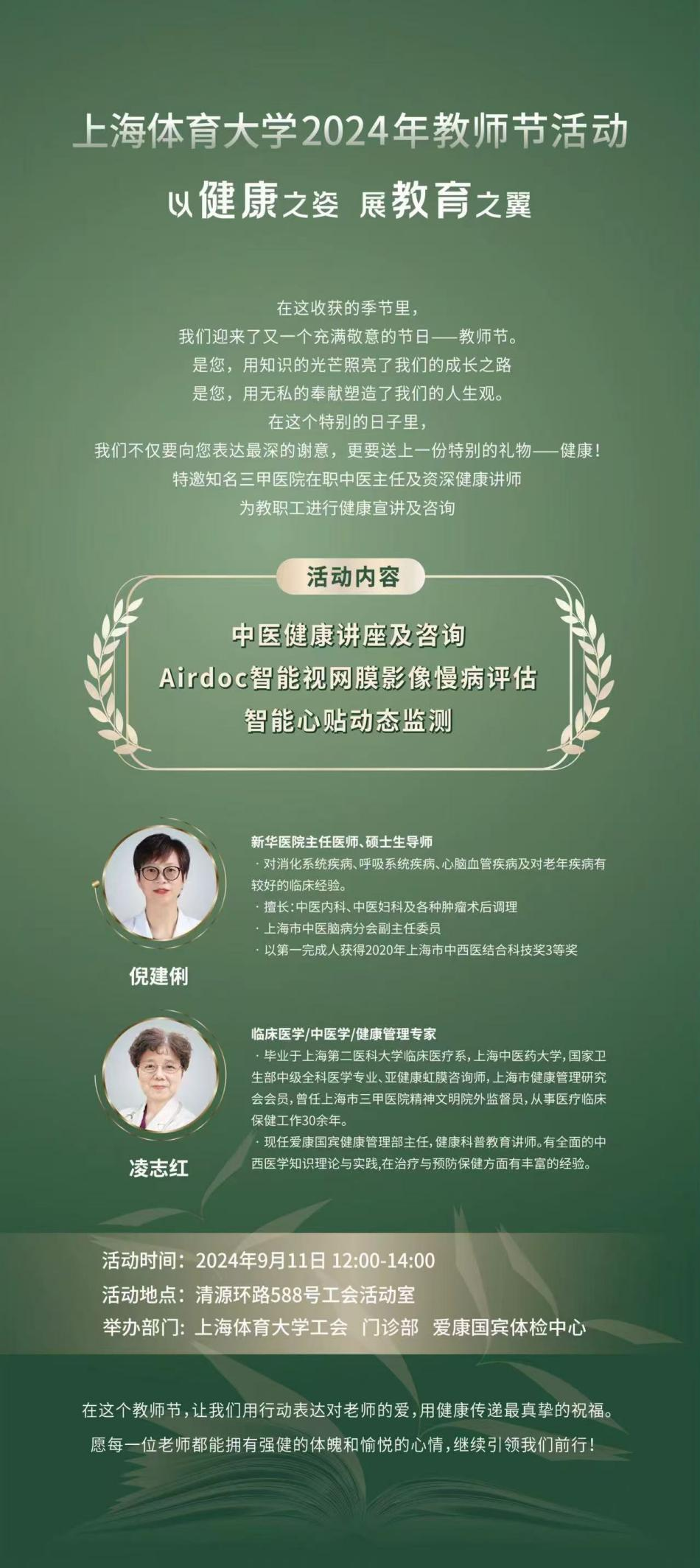 11日,校门诊部将邀请知名三甲医院在职中医主任及资深健康讲师走进校园,开展面向教职工的医疗咨询活动,让教职工们不出校门就能享受优质、便捷的医疗服务。