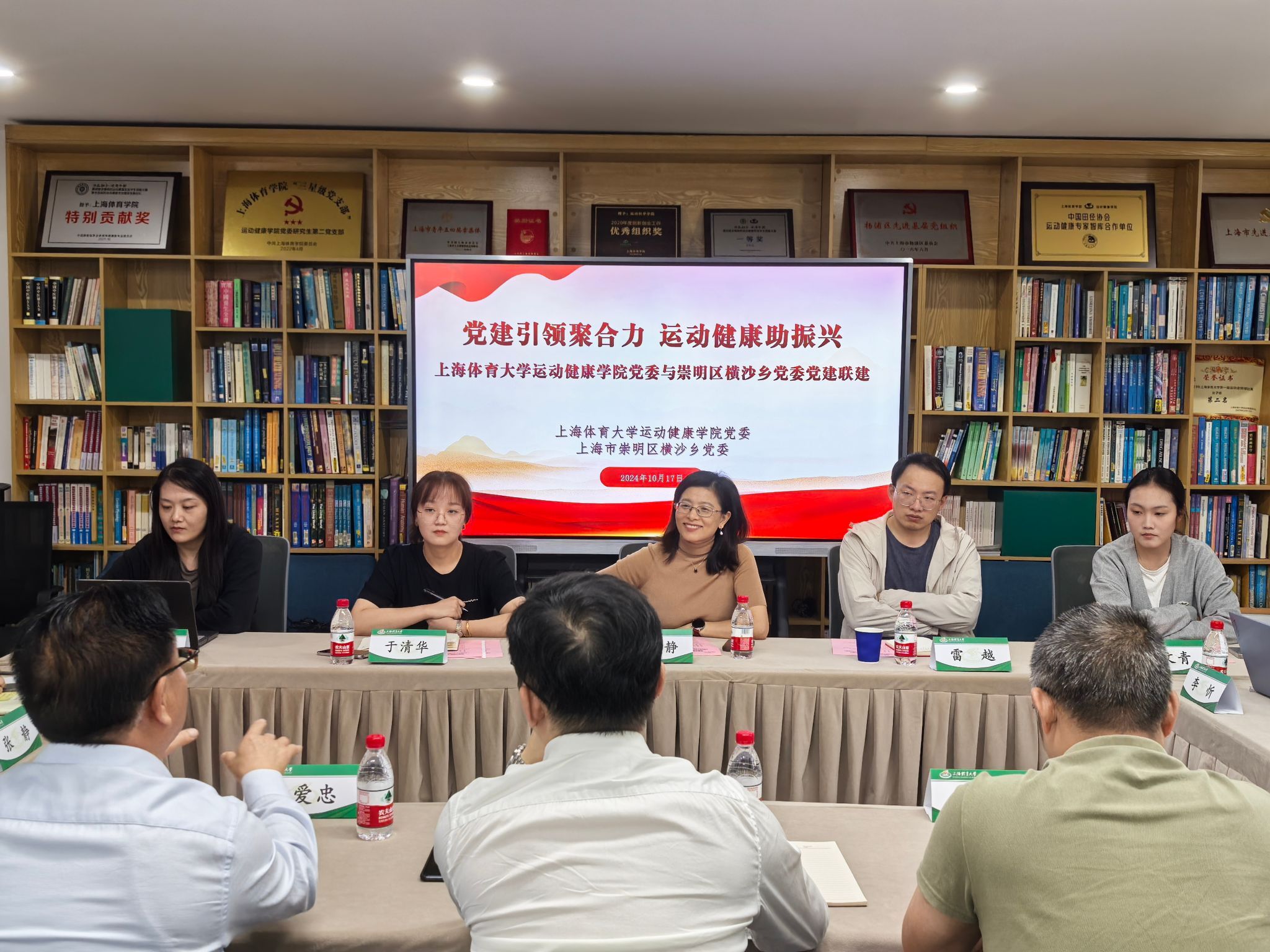 陶书记细致描绘了横沙乡的发展现状,他指出横沙乡老龄化问题相对突出,慢性病预防和运动损伤的处理已成为他们亟需关注的健康问题,他希望双方能够在党建引领下就科学运动、提高居民身体素质等方面进一步加深交流、拓宽合作内容、丰富合作形式,将横沙乡打造成一个人群样本和实习基地,以此作为桥梁,将实践中的宝贵经验转化为学术研究,进而提升医疗服务水平,惠及更广泛的社区,努力书写党建引领乡村振兴“新答卷”。