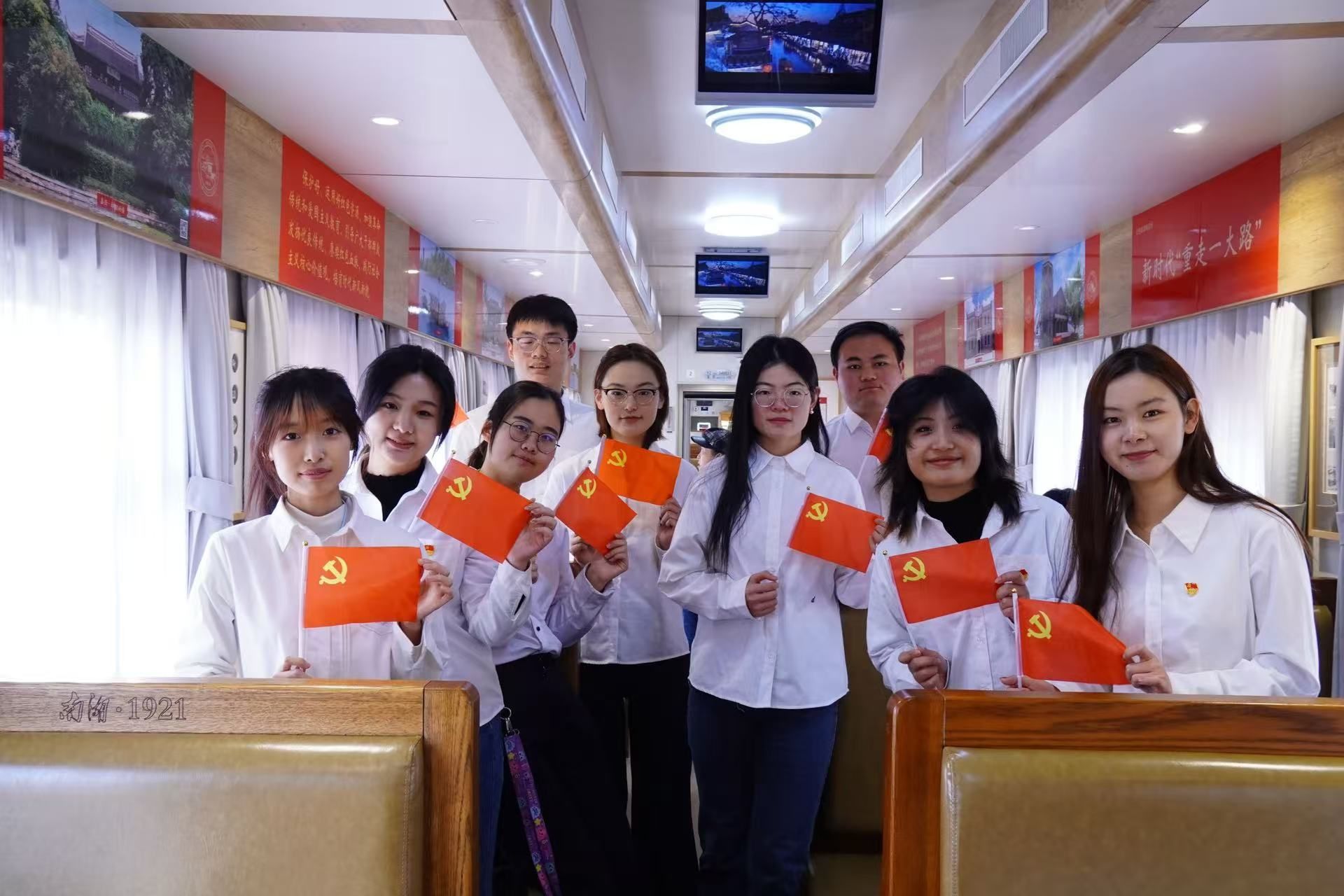 上午8时53分,一行人乘坐“周恩来号”红色专列,从上海出发,前往嘉兴。在专列上,党员们通过车厢内的红色文化展示和讲解,了解了中国共产党早期的革命历程和周恩来总理等老一辈革命家的光辉事迹,感受到了革命先辈们为国家和民族的解放事业所付出的艰辛努力和崇高精神,这让大家心潮澎湃,对即将开展的党建活动充满了期待。