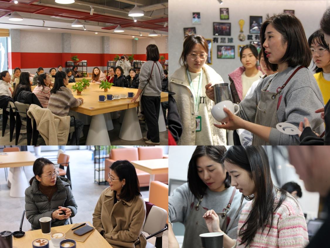 体验之余,教师们、学生们相互交流,科研、生活、兴趣、感悟……话题不断,平日积攒的压力也随着咖啡热气的升腾逐渐消散。咖啡中的奶泡勾勒的不仅是图案,更是属于新时代女性的自信风采,这场集知识性、趣味性、艺术性于一体的活动,既是对女同胞们的节日祝福,也是学院推进美育与劳动教育融合的创新实践。