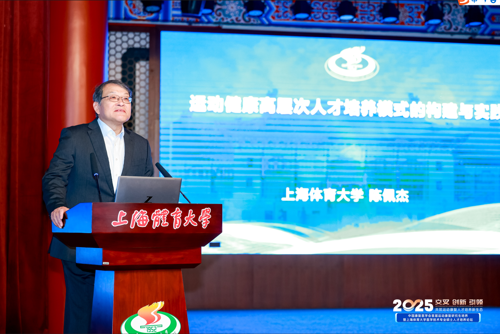 中国康复医学会体育保健康复专业委员会主委周军高度评价了学校在运动康复人才培养方面取得的成果。他指出,面对行业的快速发展,运动康复研究生课程体系与教材建设仍需进一步加强,期待通过本次论坛凝聚专家共识,共同推动运动康复教育向更高质量、更规范化方向发展。上海市康复医学会会长郑洁皎强调了运动康复在连接体育与医学、服务全人群健康中的桥梁作用。她表示,应对社会老龄化和健康需求升级的挑战,必须深化“医工融合”“产教融合”,通过临床、科研与教育的紧密协同,优化人才培养生态,汇聚发展合力。