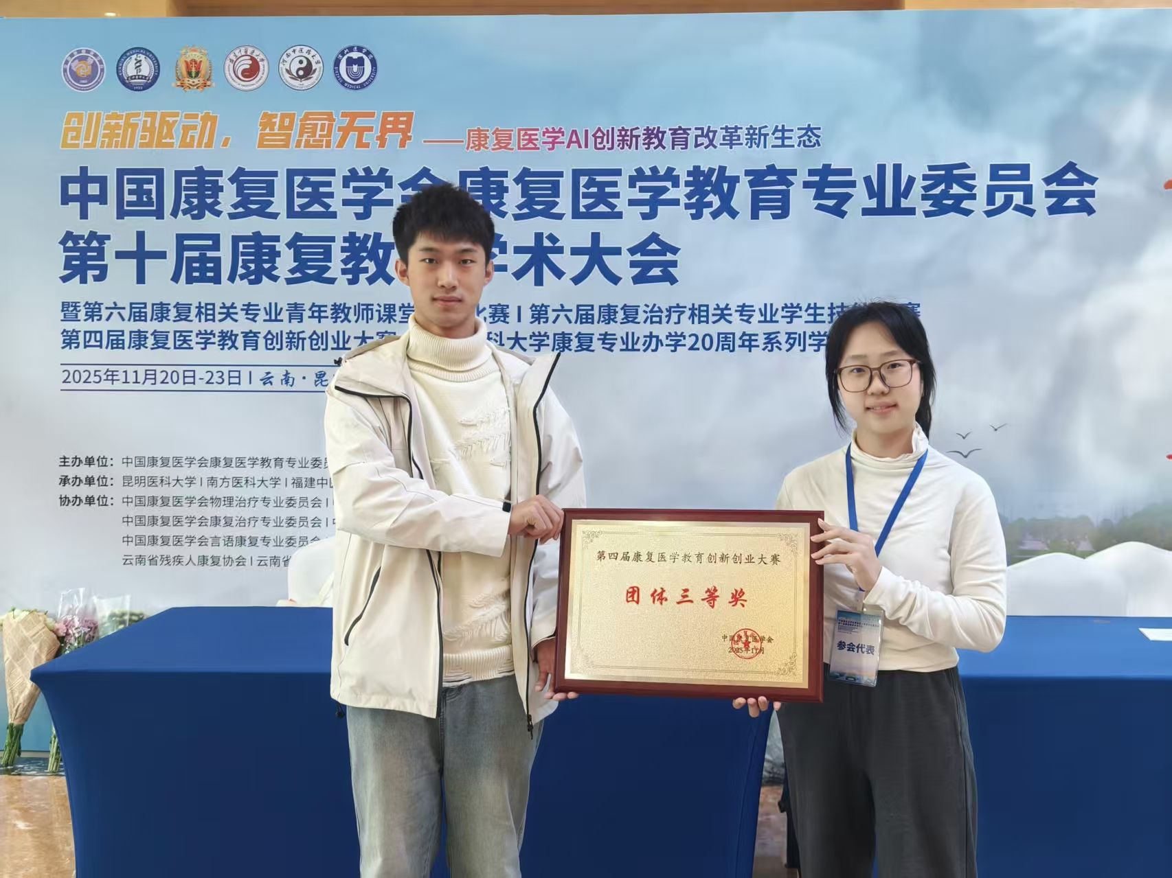 康复教育专业委员会承办康复治疗相关专业学生技能大赛在昆明医科大学举办,共设置康复治疗、运动康复、物理治疗、作业治疗、听力与言语康复、假肢矫形工程等6个专业赛道,共吸引了159个代表队参赛。经过严格的线上初赛选拔,仅18支队伍晋级运动康复组线下决赛。我校参赛队伍在高水平院校云集的决赛中,以总分第二名的成绩获得运动康复组团体二等奖,体现了较强的专业能力与竞技水平。同时在第四届康复医学教育创新创业大赛中荣获三等奖。充分展示了我校康复教育的教学实力与育人成效。