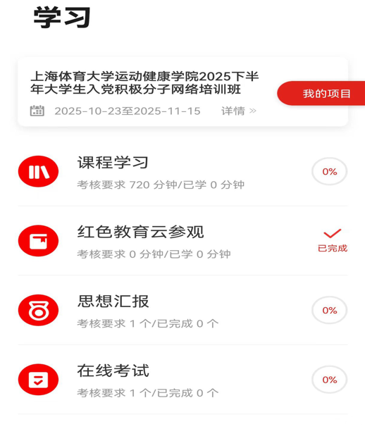 线上学习阶段,学员依托国家教育行政学院大学生网络党校平台,完成 16 学时的专题课程学习,涵盖习近平新时代中国特色社会主义思想、党的二十大及二十届二中、三中、四中全会精神、党章党规党纪等核心内容,并通过在线考试、撰写思想汇报等形式巩固学习成果。线下环节则聚焦专题授课、红色研学、专业服务三大模块,设置 16 学时的实践课程,实现理论学习与实践锻炼的有机融合,让党性修养在沉浸式体验中入脑入心。
