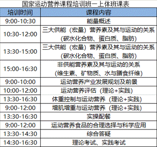 该培训认证课程是由中国食品科学技术学会运动营养食品分会开发的课程,在业内具有极高的认可度。本课程主要目的是,让每位学员都能掌握使用运动营养知识与技能,为自身和目标群体制定个性化运动营养计划,提升自我及目标群体健康水平及训练效果。相关报名信息与要求具体如下: