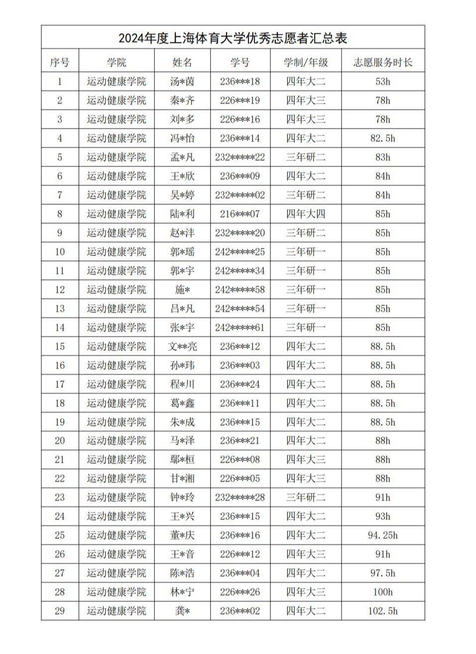本次评选根据学生自主申请,以及参加第七届中国国际进口博览会、2024年田径钻石联赛(苏州)、奥运会资格系列赛·上海站、2024年全国跳水锦标赛、上海天文馆志愿活动、2024上海超级杯花滑比赛、2024别克LPGA锦标赛、2024FISE极限运动世界巡回赛·上海站、第七届中国国际进口博览会志愿者、2024世界泳联世界杯、2024年乒超联赛等校级及以上大型志愿服务活动的情况,结合各项评选条件和日常参与志愿服务等综合表现情况,本着“优中选优”的原则,经过逐一审核、通盘考虑、慎重研究,现对学院拟评选名单进行公示。