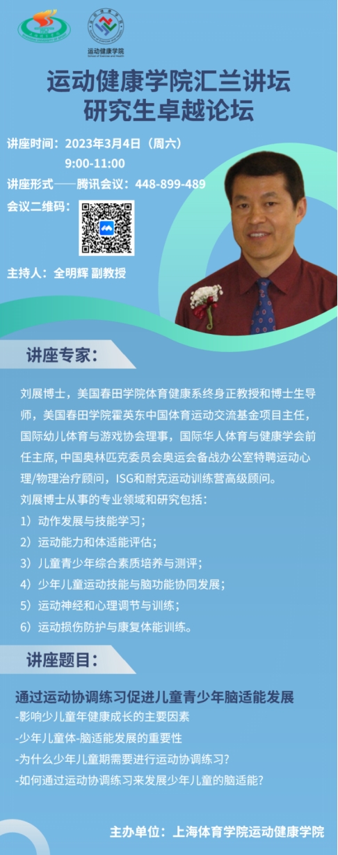 讲座题目:通过运动协调练习促进儿童青少年脑适能发展