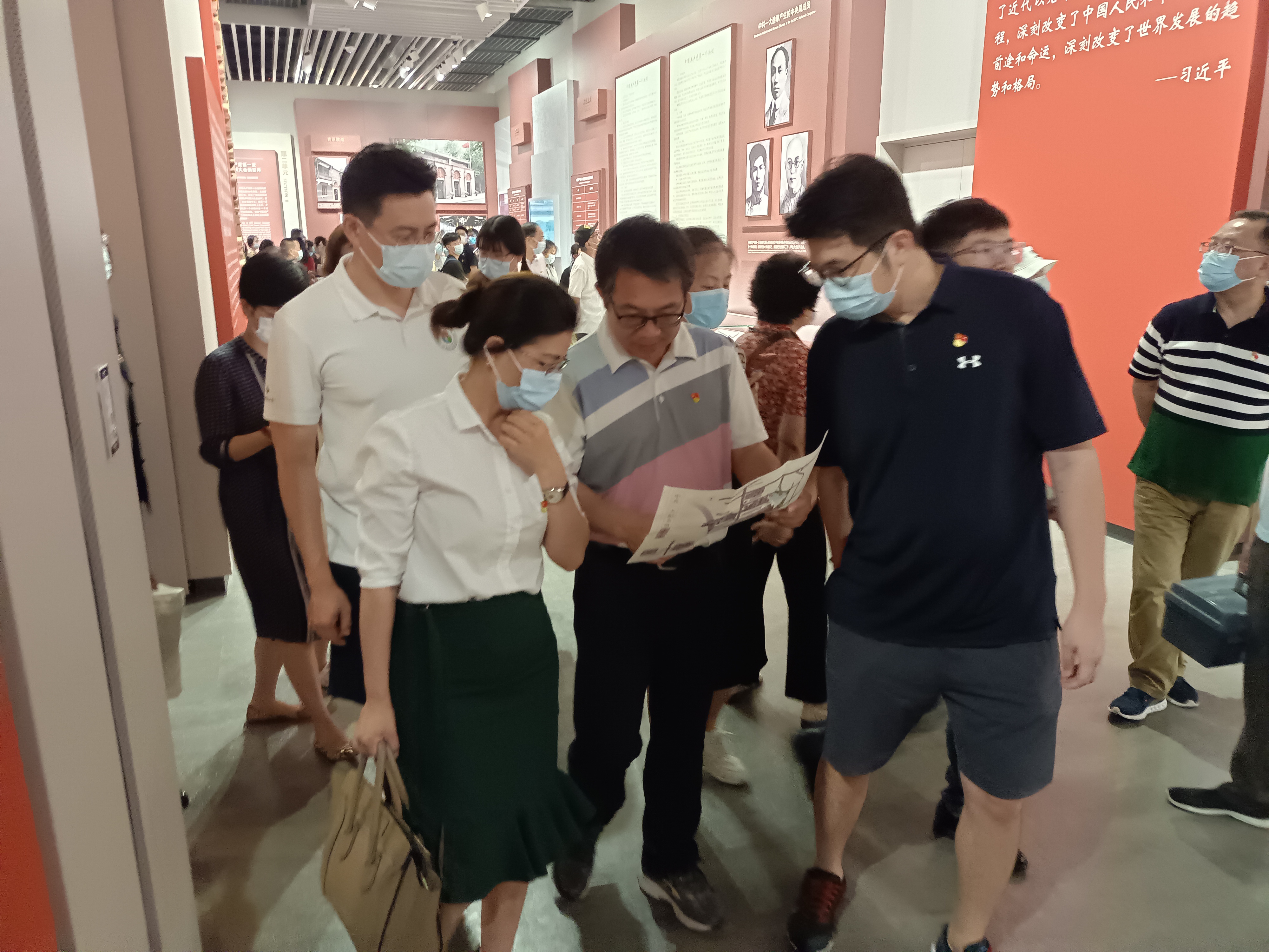 运动人体教工党支部与运动康复教工党支部一行20余名教工党员在学院党委书记熊静、副书记、院长王茹、副院长于新凯的带领下,来到了黄浦区黄陂南路374号中共一大会址纪念馆,一百年前在望志路106号这所石库门建筑的楼下客厅里来自各地的13名代表,召开了中国共产党第一次全国代表大会,中国革命从此焕然一新。进入展厅,展览从近代中国的屈辱史开始,以上海为坐标,讲述了近代中国深受“三座大山”的压迫之苦,讲述了中国工人阶级的诞生以及其与生俱来的深重苦难,伴随着十月革命的炮声马克思主义传入了中国,新文化运动的汹涌思潮,南陈北李相约建党的历史画面,陈望道翻译《共产党宣言》的前前后后,以及党领导人民革命、社会建设的珍贵点滴,百年党史浪涛里中国共产党人的初心使命震撼着在场所有党员。