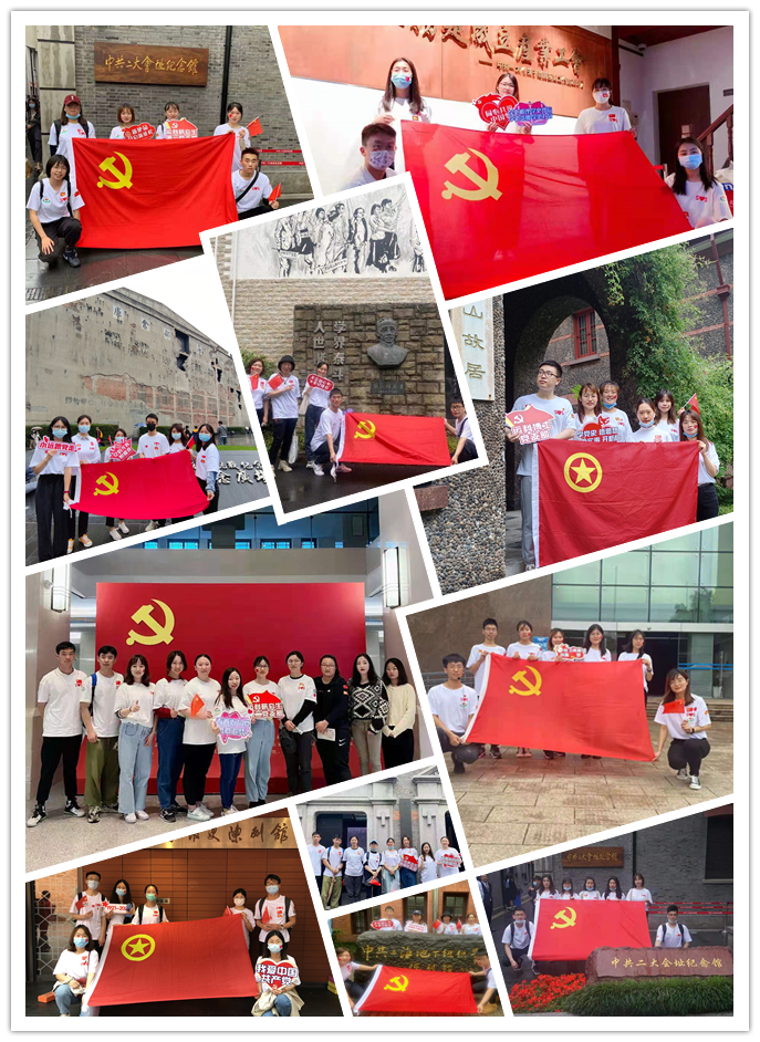 为促进不同专业和年级之间学生的交流,上午活动共分10小组,每组均含运科学院四个支部的成员,参照上海市教育卫生工作委员会党委推出的“我为建党百年打卡活动”十条线路图,提前选择1-2红色景点,设计路线,准备讲解素材,采用公共交通、自行车、步行等方式进行实地寻访。形式包括寻访打卡、参观学习、组织讲解、小问答等。阴雨绵绵,也没有阻拦大家的热血和步伐,一上午共计打卡98人次。刚历经169个日夜,五四重新开馆的中共二大会址纪念馆更是吸引了两个小组前去参观,同学们还因此上了公众号“新民眼”的封面。同时第七组成员和上海中医药大学针灸推拿学院第二党支部的成员共同参观学习了上海市历史博物馆,进行了互动讲解学习。