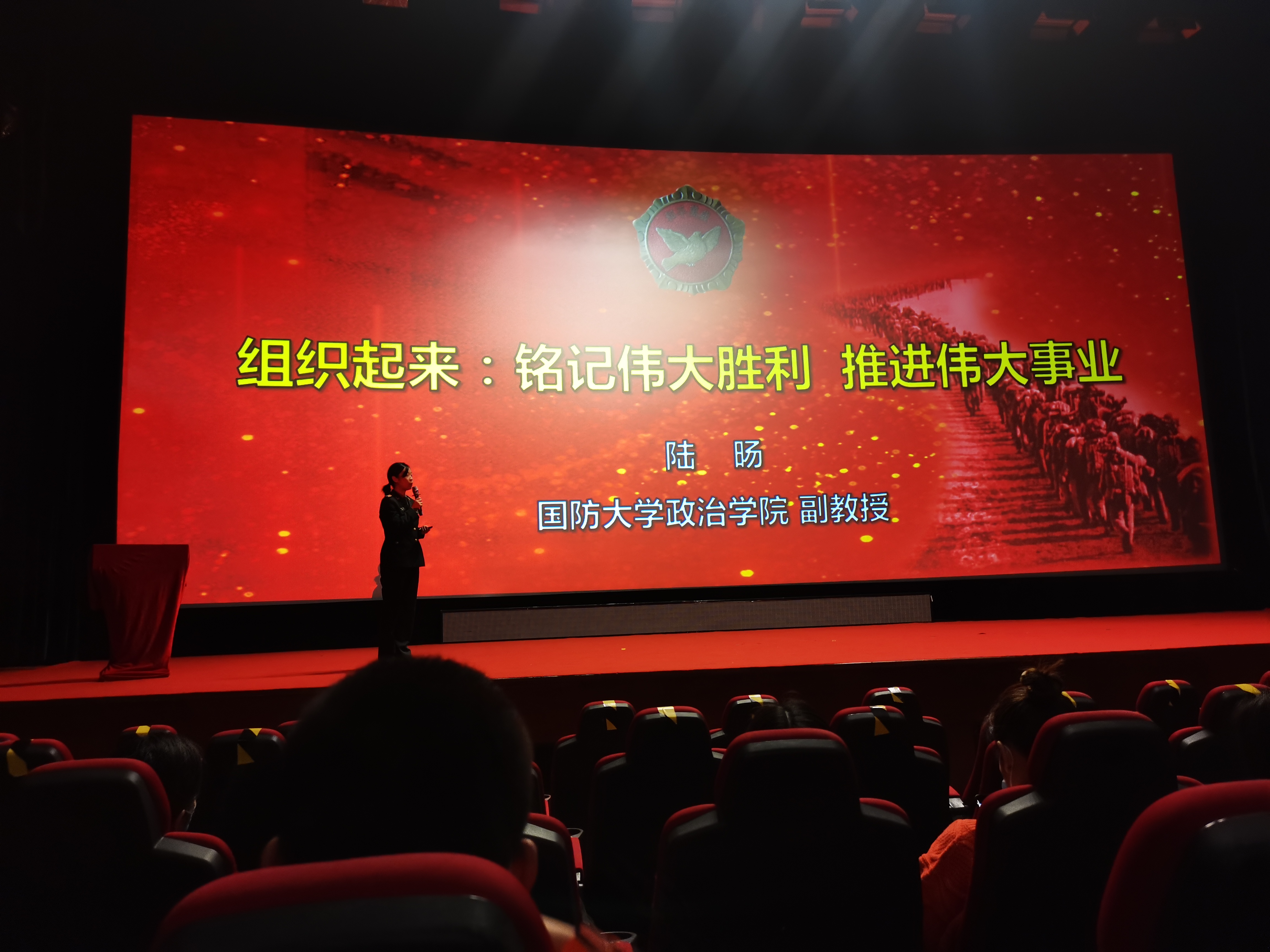 此次党课主题是“组织起来:铭记伟大胜利 推荐伟大事业”,由国防大学政治学院陆旸副教授主持,她向在场师生党员生动讲述了抗美援朝的历史背景,以及以毛泽东为核心的党中央如何审时度势,维护国家主权和核心利益所作出的英明决断,介绍了抗美援朝的历史意义。《金刚川》正取材于抗美援朝金城战役中中国人民解放军体现出的英勇不屈的高尚勇气,从不同叙事视角展现了这场看似实力悬殊的战争背后人的精神世界的顽强,中国人民志愿军的牺牲精神震撼了在场师生的内心。放映结束后,党员纷纷表示铭记历史,铭记使命,铭记自己的入党誓词,将以“初心和使命”担在肩上,为建设中国特色社会主义伟大事业而奋斗。