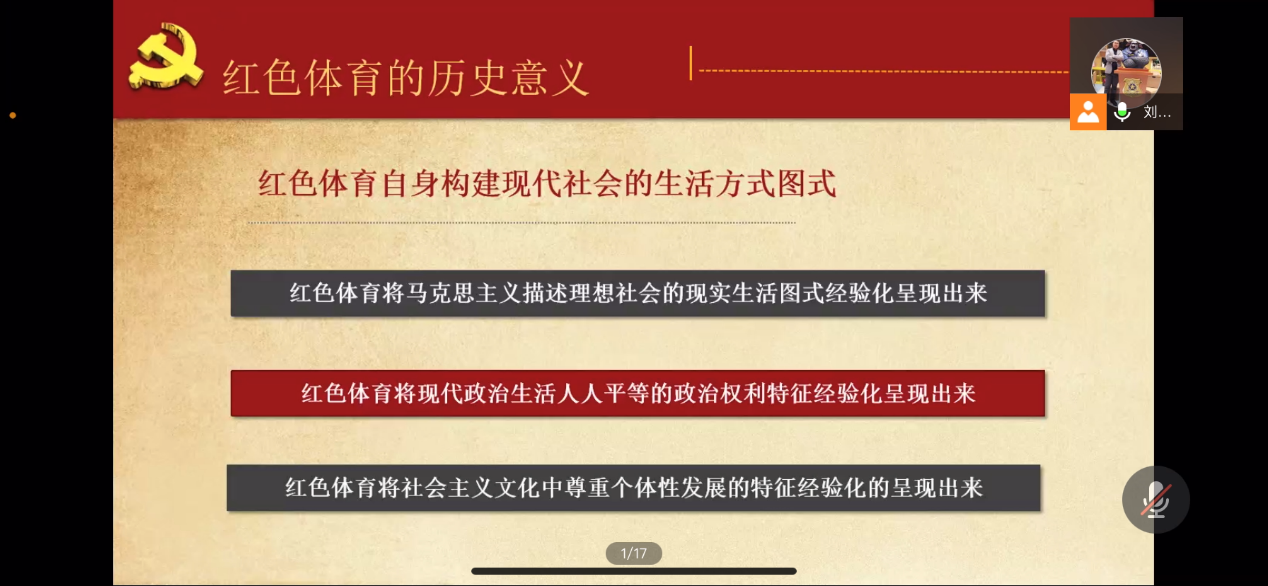 刘云龙老师表示,纵观我国红色体育的发展史,“人民至上”始终是贯穿党领导体育事业发展的一条主线,它谱写了我党建立的各个革命根据地峥嵘岁月中的强音,也指引着新时代体育事业接续发展的方向。