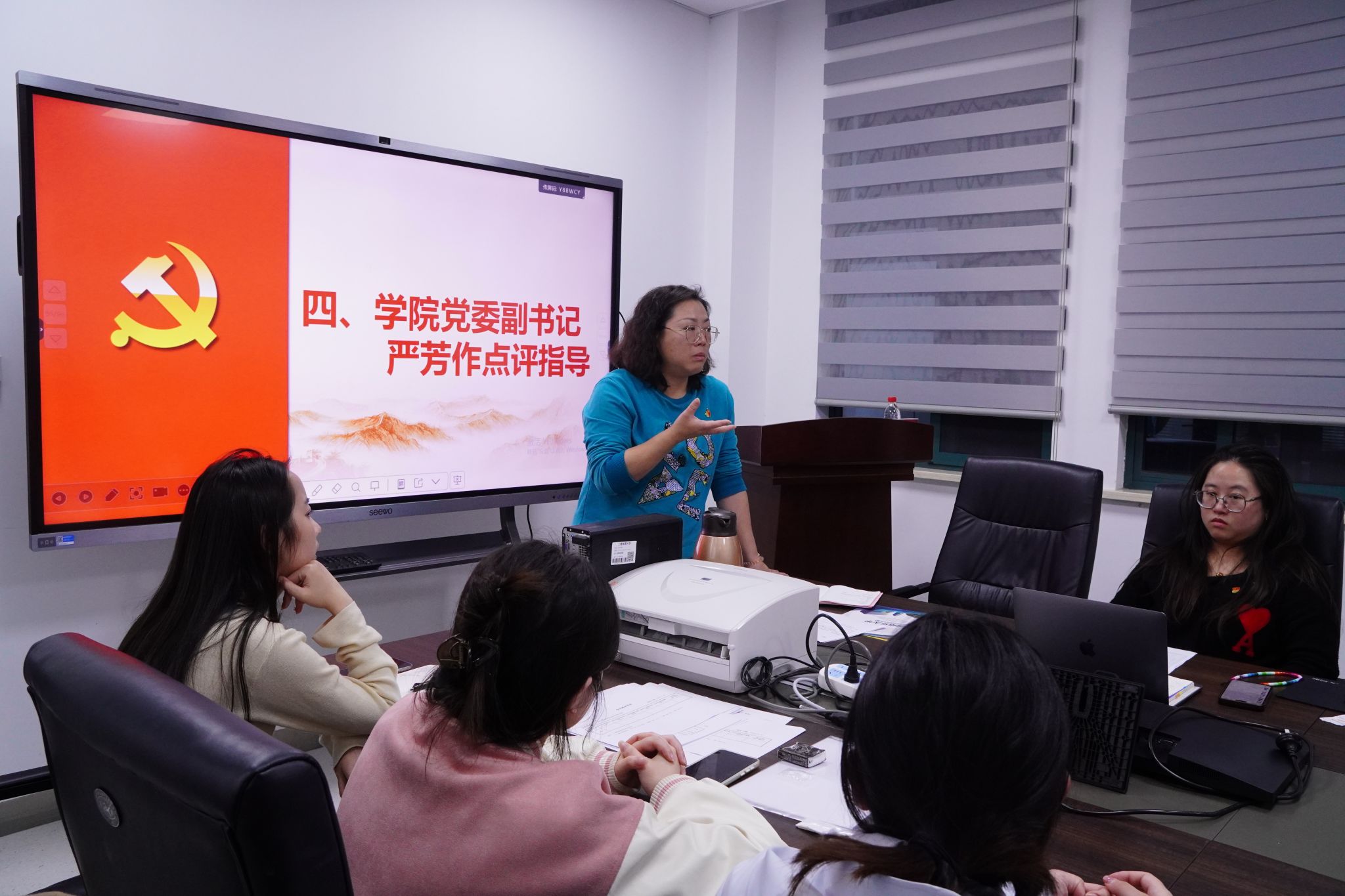 最后,学院党委副书记严芳对本次会议进行了总结点评。她充分肯定了支部过去一年取得的工作成果,并对存在的不足及改进的方向进行了探讨,对大家在校园日常行为规范、先锋模范作用发挥等方面,提出了明确要求。她希望全体党员能够认真检视问题、认真整改,以此次组织生活会为契机,加强反思与互相督促,共同进步,在不断锤炼党性的同时,提升责任意识和担当能力,努力成长为更优秀的共产党员。