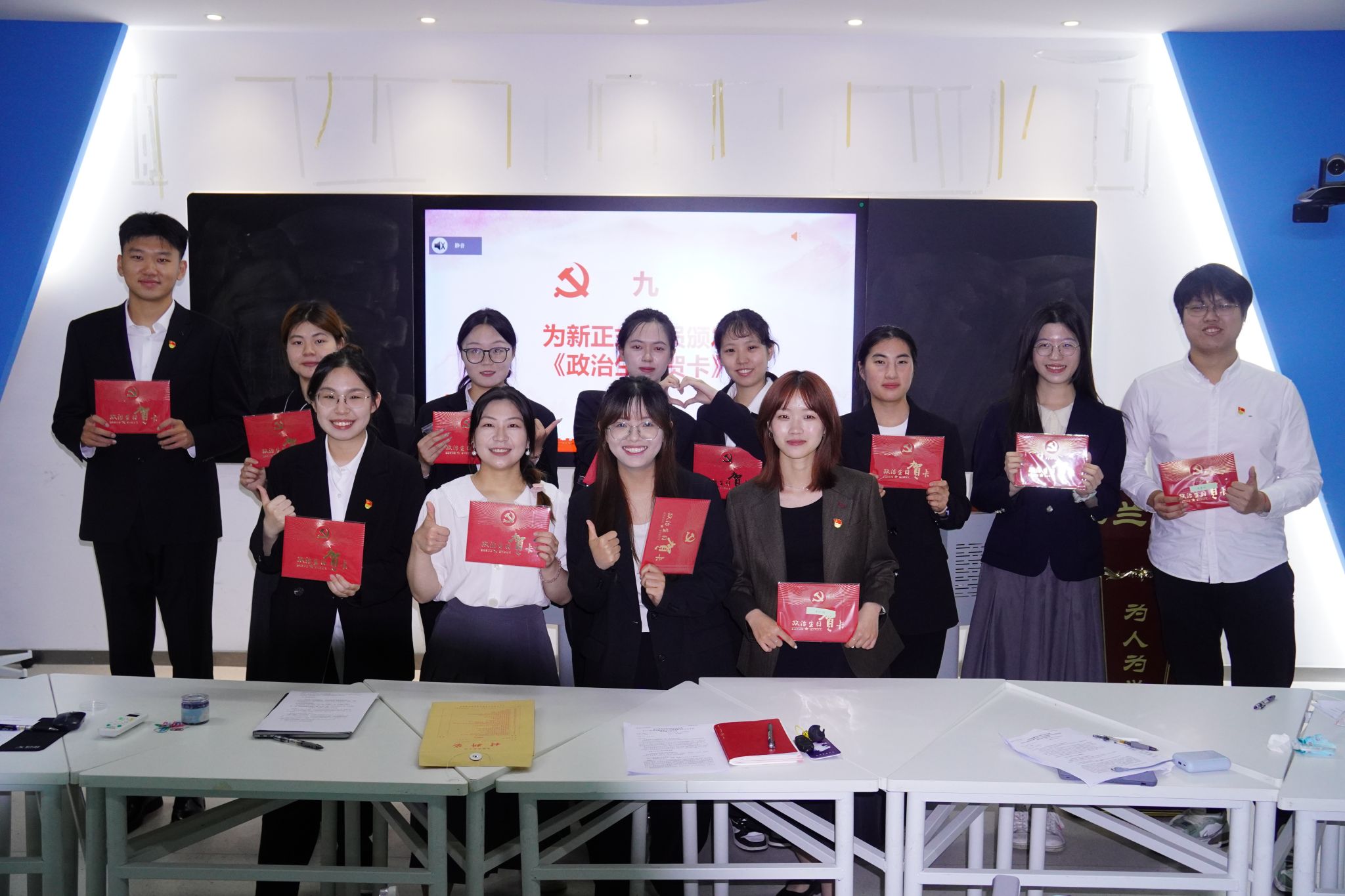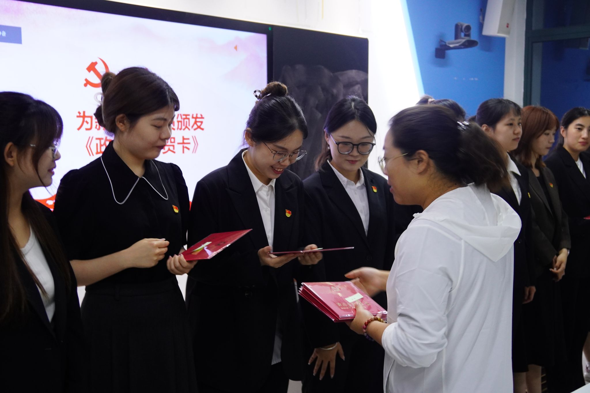 在决议公布后,学院党委副书记严芳同志庄重地为12位按期转正的党员颁发了《政治生日贺卡》及学习纪念品,向他们表达了党组织的深切关怀与诚挚祝福。