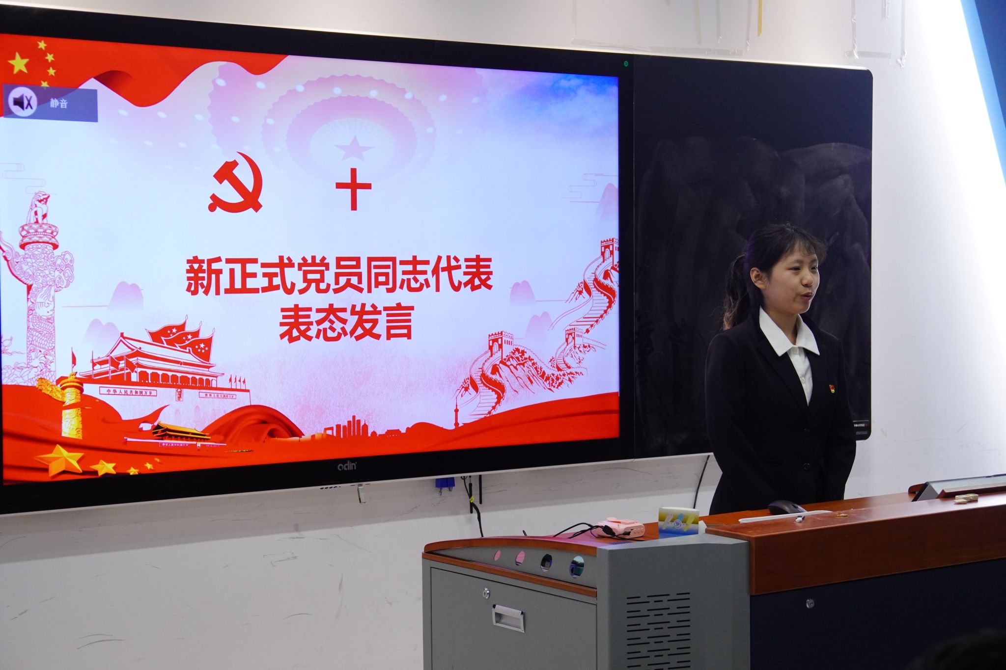 新正式党员代表在表态发言中,以饱满的热情和坚定的信念,向党组织致以最诚挚的感谢。她深情回顾了在党组织的精心培养与教育下,个人在思想觉悟、理论素养和实践能力等方面取得的显著进步。她郑重承诺,未来将在党组织的继续培养和关怀下,深刻反思不足,着力克服短板,时刻以党员标准严格要求自己,在学业精进、服务奉献和未来岗位上持续发挥先锋模范作用,不负辜负党组织与人民群众的信任与期望。