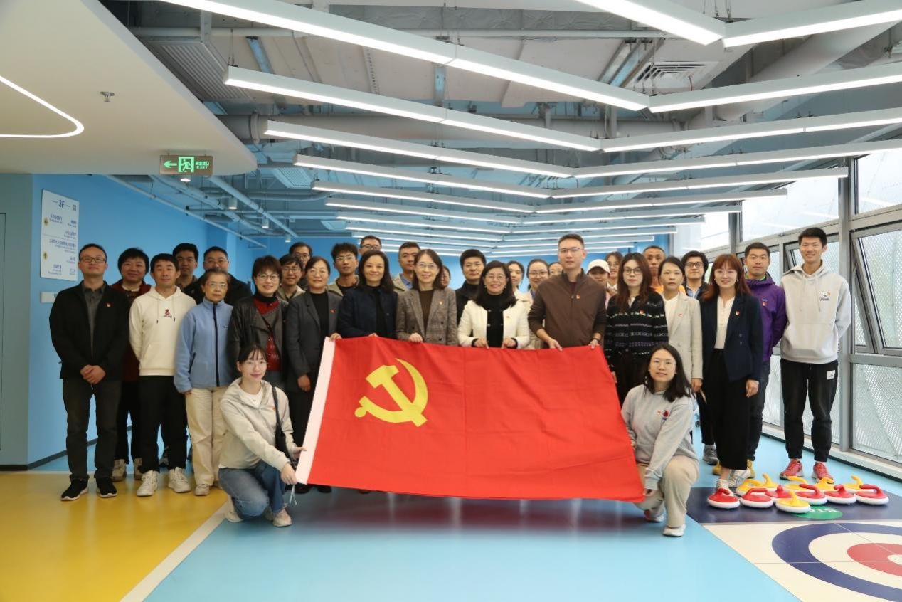 接着,在全明辉书记的引导下,双方党员开启了沉浸式参观与运动体验之旅。在体质监测区,党员们近距离观察骨龄检测仪器、心肺功能测试仪等专业设备,全明辉书记详细讲解青少年体质数据采集与分析流程,还结合专业知识,现场解读了不同年龄段学生的体质健康达标标准;在运动康复实验室,针对青少年常见的脊柱侧弯、运动损伤等问题,双方教师围绕 “如何在校园中预防运动损伤”开即时探讨。随后的运动项目体验环节更让活动氛围升温。在趣味运动场馆内,党员们沉浸体验了旱地冰壶、激光射击等运动项目,运动人体科学系的党员教师化身“专业教练”,手把手指导动作规范,讲解“小运动、大健康”的科学原理。