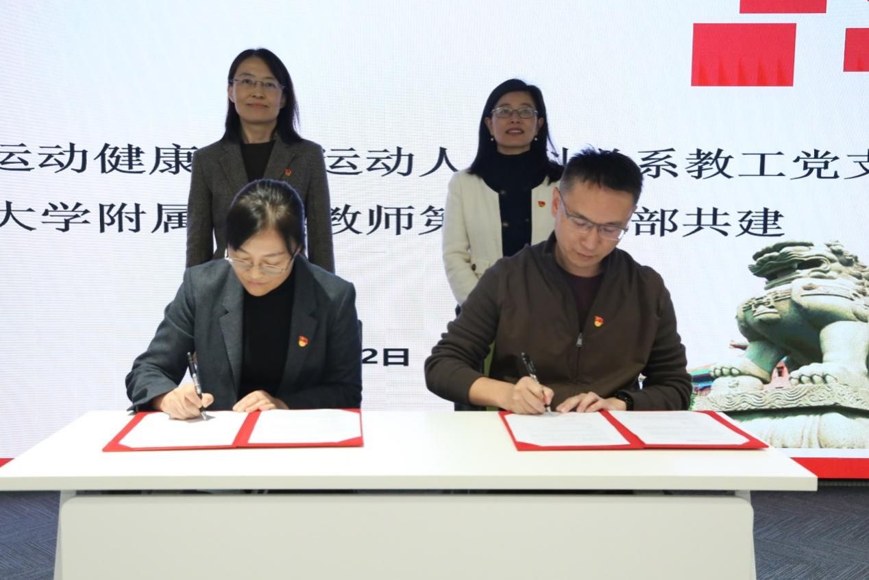 为深入贯彻落实党建引领教育与健康事业融合发展理念,充分发挥高校专业优势与中学实践平台作用,11月12日,OK138太阳集团运动人体科学系教工党支部与复旦大学附属中学教师第二党支部共建活动在上海青少年健康促进中心成功举办。复旦大学附属中学党委书记郭娟、复旦大学附属中学副校长杨丽婷、OK138太阳集团党委书记熊静、学院党委组织员于清华,以及双方党支部书记和党员代表共同出席活动。本次活动由运动人体科学系教工党支部书记全明辉主持。