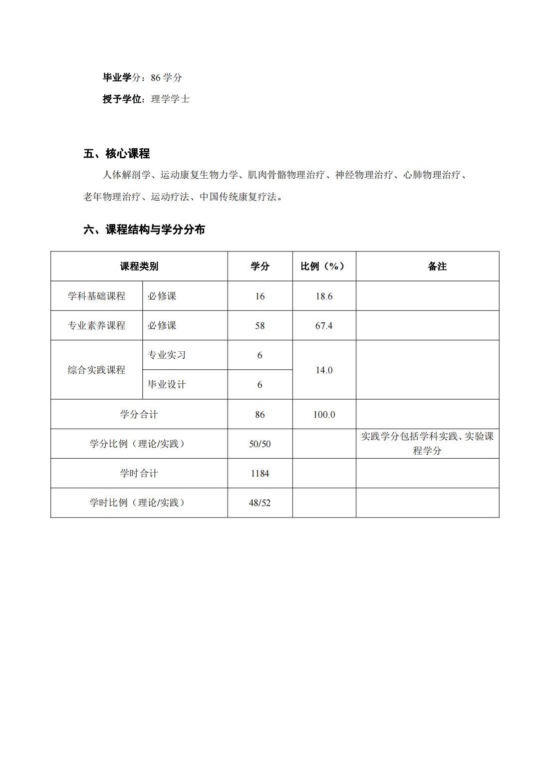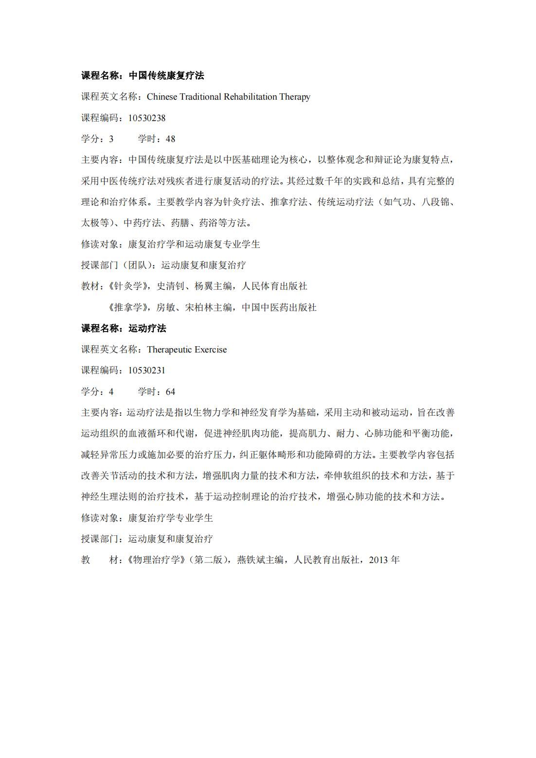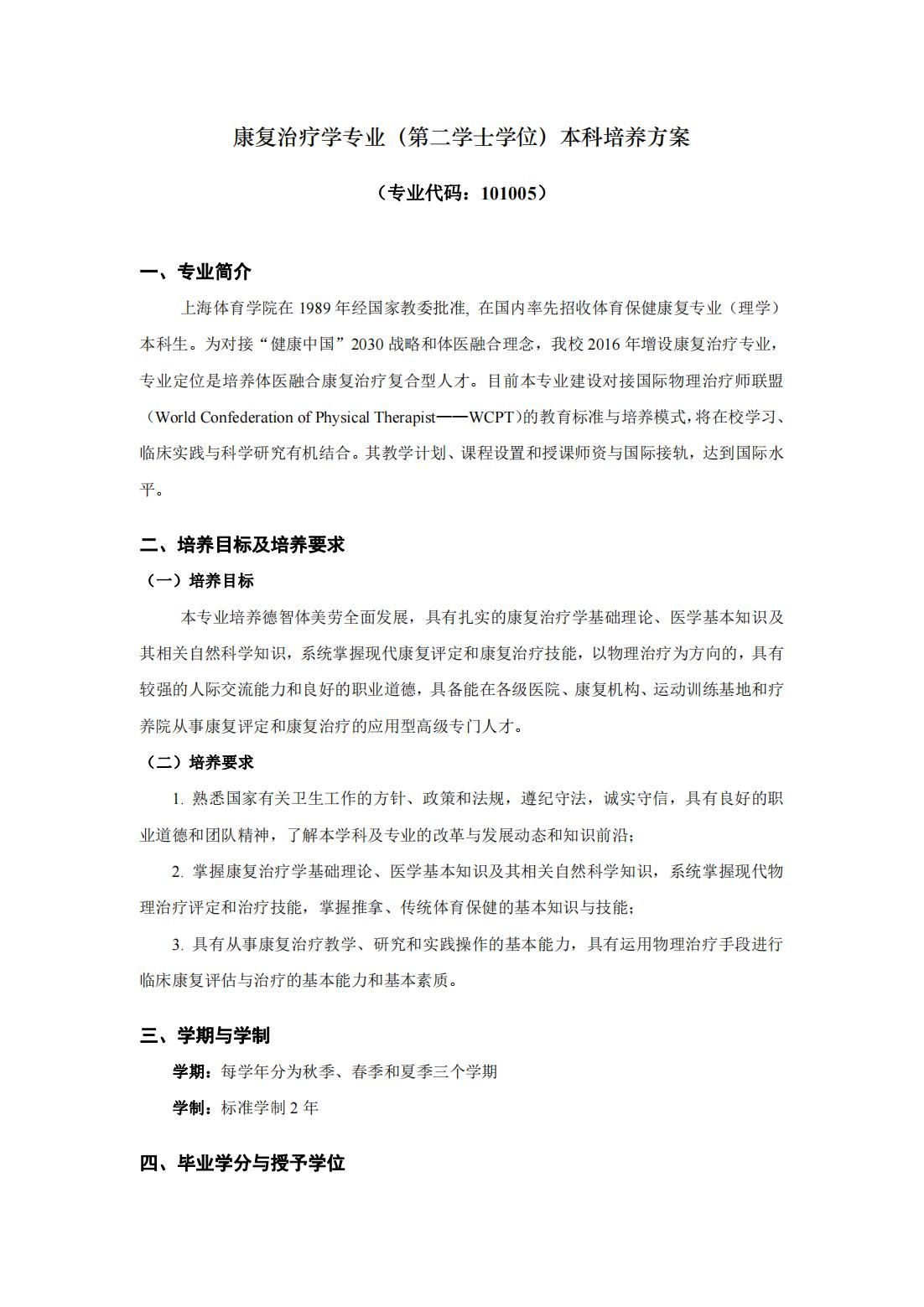 康复治疗学(第二学士学位)培养方案