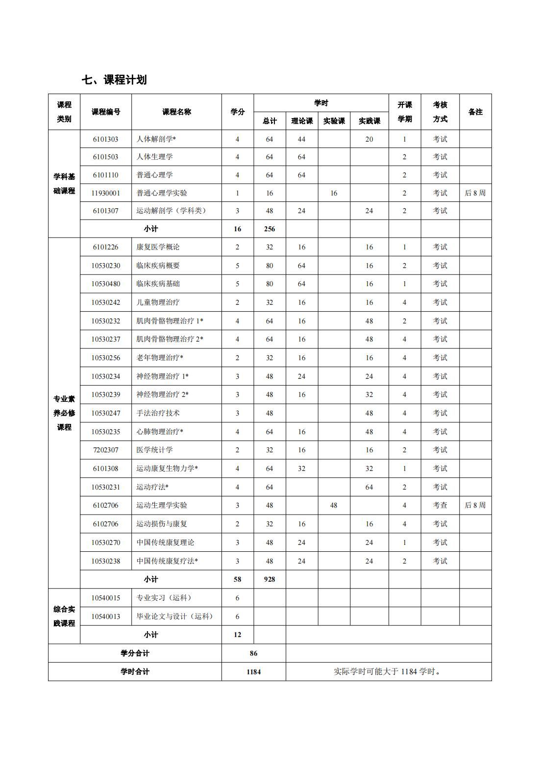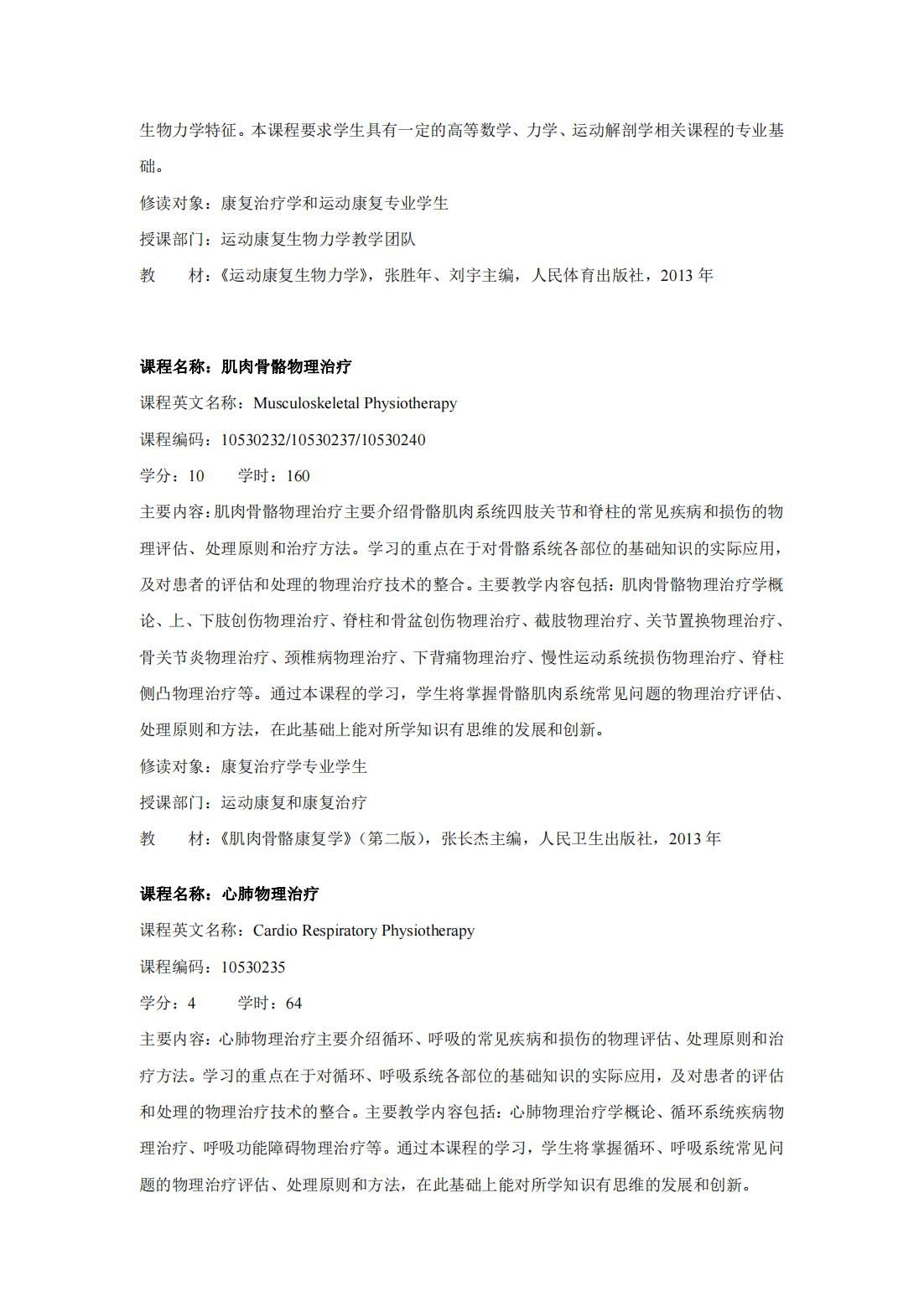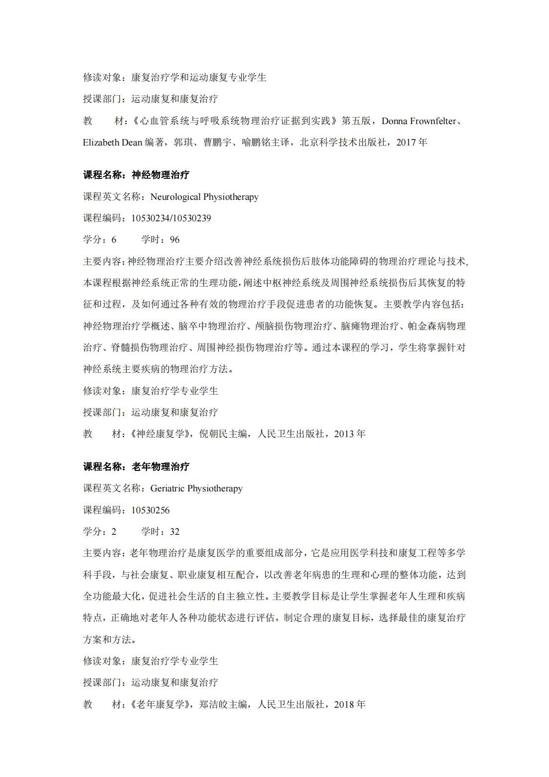 康复治疗学(第二学士学位)培养方案