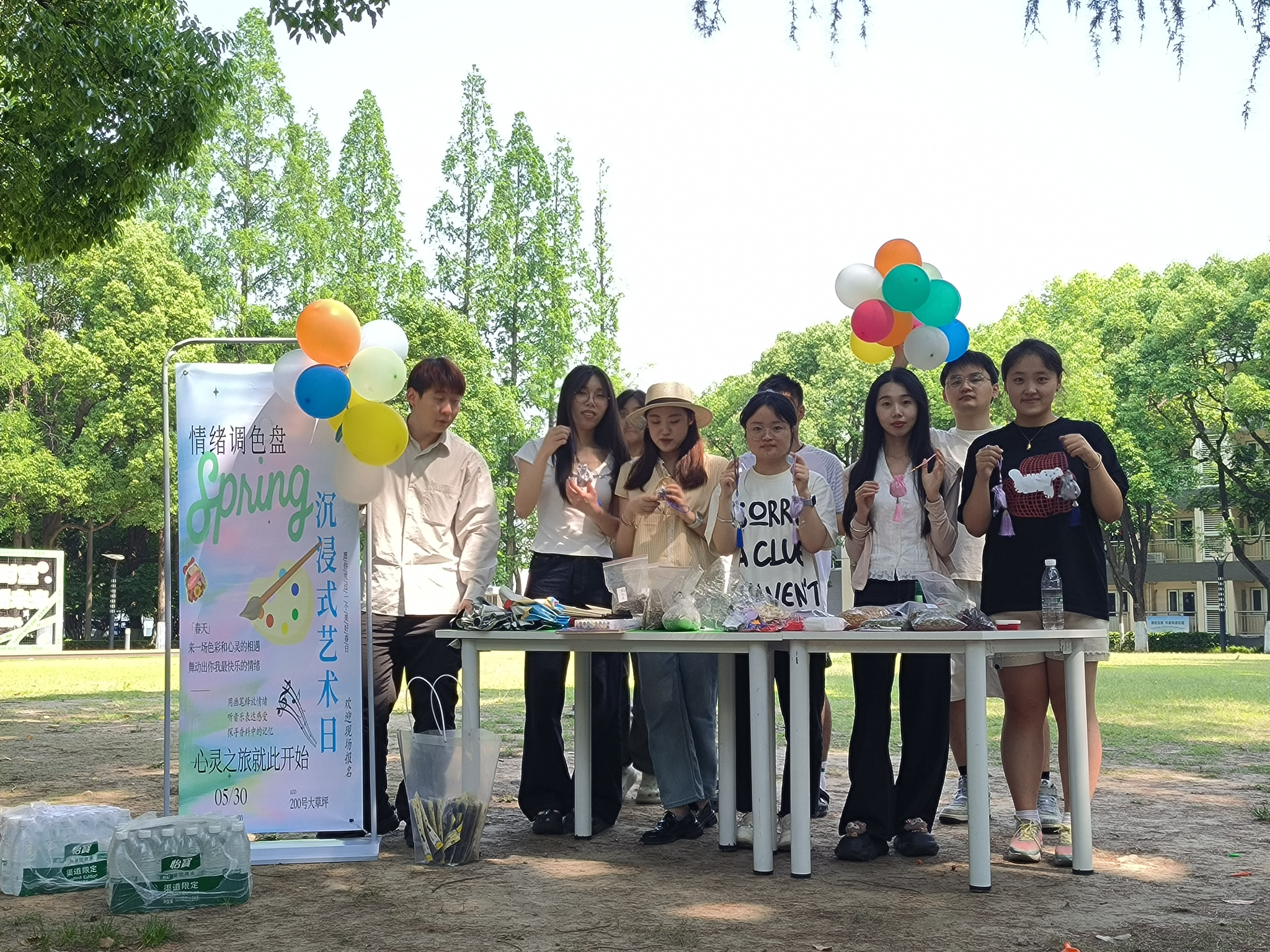2025年5月30日下午13时许,ok138太阳集团恒仁路200号大草坪上,一场别开生面的“情绪调色盘”沉浸式艺术日活动在这里成功举办,吸引了众多同学的积极参与。在快节奏的现代生活中,情绪管理已成为人们关注的焦点。为了帮助同学们更好地探索、表达和释放情绪,提升心理健康水平,公卫班心理委员李乐、心理宣传委员夏业澜一同精心策划了这场以“色彩心灵,舞动情绪”为主题的沉浸式艺术日活动。活动旨在通过多元化的艺术形式,营造轻松、包容的氛围,促进同学之间的情感交流与支持。