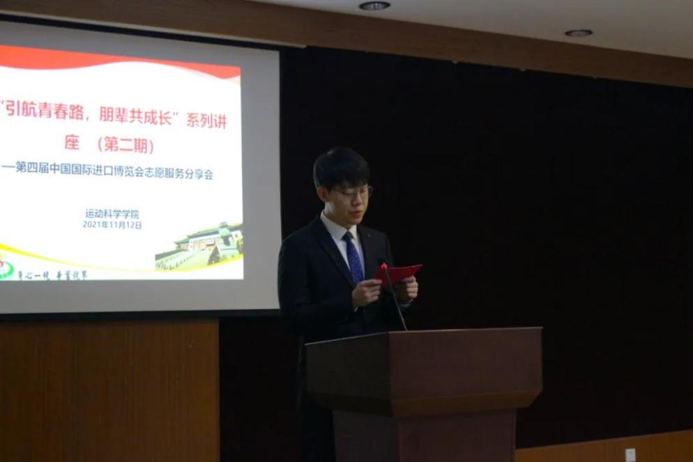 第四届中国国际进口博览会已经圆满落下帷幕,今年,来自我院19级和20级的运动康复班、运动人体科学班和康复治疗班的26名同学分别负责担任虹桥论坛分论坛和消费品展区的志愿者。此外,还有8位来自19级康复治疗学专业的同学作为储备志愿者。11月12日,在学生活动中心二楼,我们开展了朋辈讲堂(第二期),邀请到了各个不同岗位的小叶子们,为我们分享他们的志愿经历和心得体会。分享会由18级运动康复班王纪超同学主持。