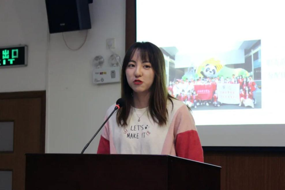 首先,罗佳欣同学为我们介绍了消费品展区的工作分配及工作细则。谈及她的岗位工作,她表示对品牌的了解和指引路线的熟知是两大难点,需要背诵记忆的内容量很大,但是出于一名"小叶子"具备的责任感,她花了很大功夫成功完成了这两项前期工作。在工作过程中,她提出面对问题要有自信心,要表现得不要慌张,落落大方,这样也可以在这过程中锻炼应变能力。最后,罗佳欣同学总结到:只有真心才能做好志愿服务,并且在此次进博会服务过程中,她锻炼了沟通能力、收获了友谊和奉献自我的快乐。