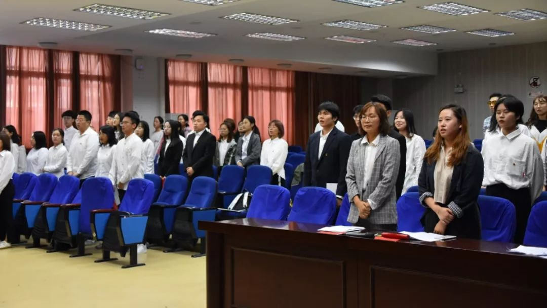 在团总支委员樊奕同学的主持下,全体与会人员起立奏唱国歌,宣告本次大会正式召开。代表们举手表决并通过了大会表决办法(草案)、大会代表资格审查报告(草案)、大会选举办法(草案)等。