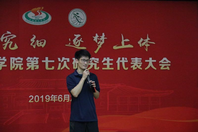 第十七届学生会体育部部长费滕作为代表上台发言,对上一年度工作进行了总结反思,表示来年会做的更好。