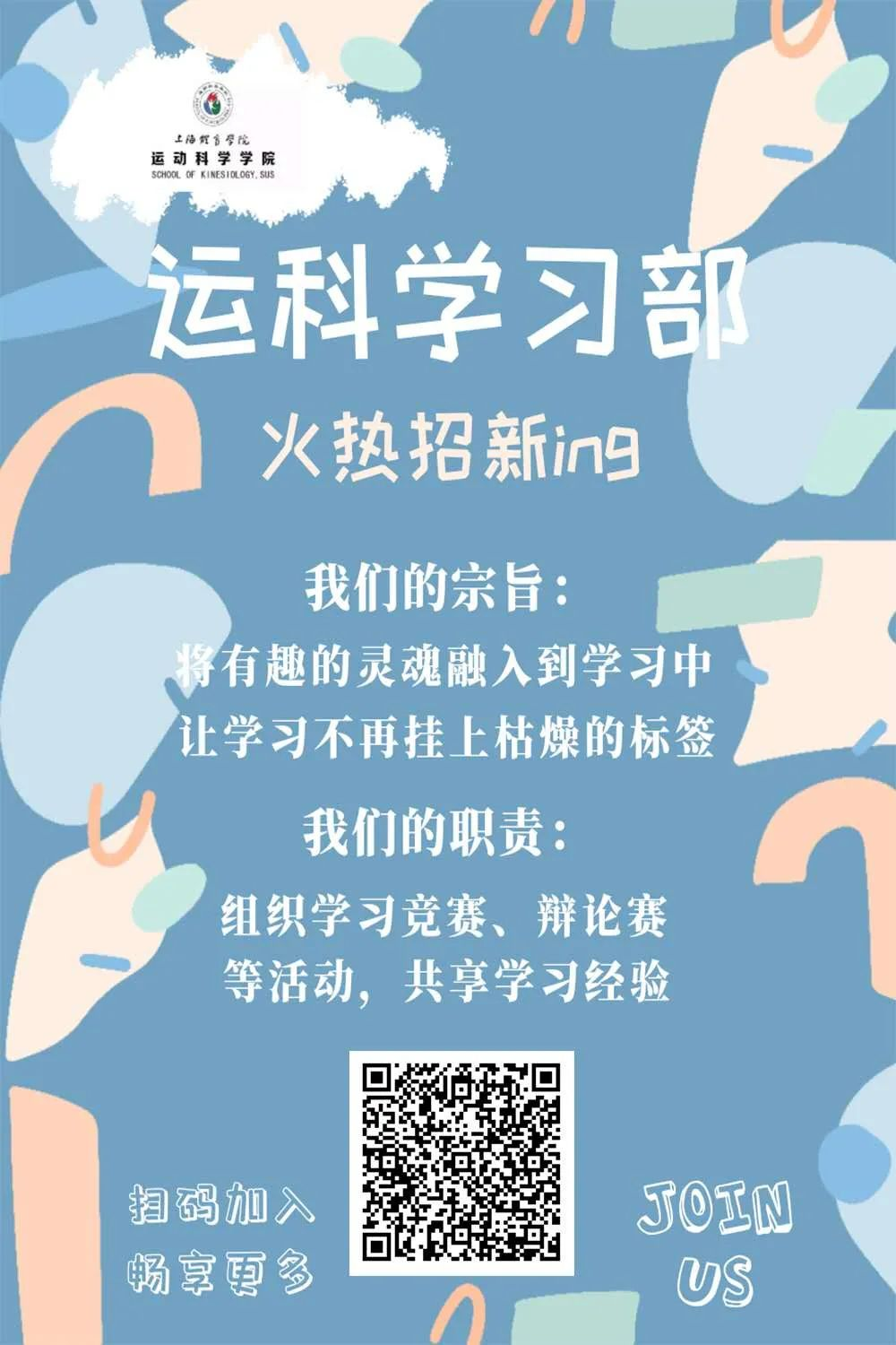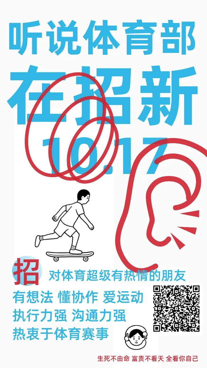 大一的空闲时间很多,不如加入宣传部让生活充实起来吧!加入我们,你可以——成为运科的发言人,向外宣传上体运科;及时掌握前沿资讯,结识优秀的同学和可爱的老师;学习新媒体技能,包括但不限于摄影、摄像、后期制作,文案编辑、推送排版、公众号运营。各种随机福利和好多好多加蓝本的机会!
