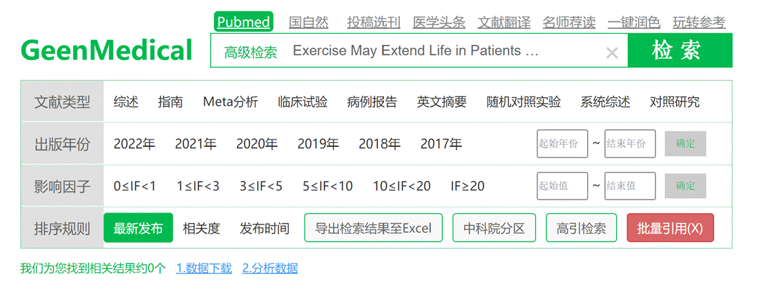2. GeenMedical,当pubmed里面的文章下载不了时,可以选择这个网站去下载英文全文,网址:https://www.geenmedical.com/search?query=%7B%22keyword%22:%22Exercise%20May%20Extend%20Life%20in%20Patients%20With%20High%20Serum%20Uric%20Acid%22%7D