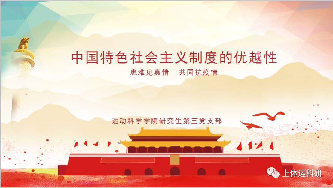 2020年3月18日,运科研究生第三党支部召开了以《中国特色社会主义制度的优越性》为主题的线上组织生活会,党支部书记结合疫情展开“患难见真情,共同抗疫情”学习大会,本次学习大会以线上学习的方式进行,这也是运科研究生第三党支部自成立以来,首次开展线上组织生活会,既保证了党组织工作有序进行,又拓展了组织生活会形式。